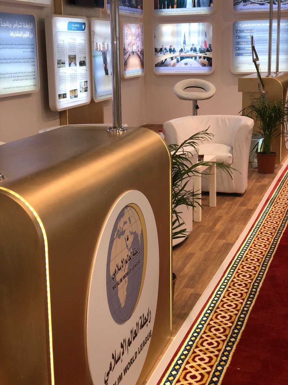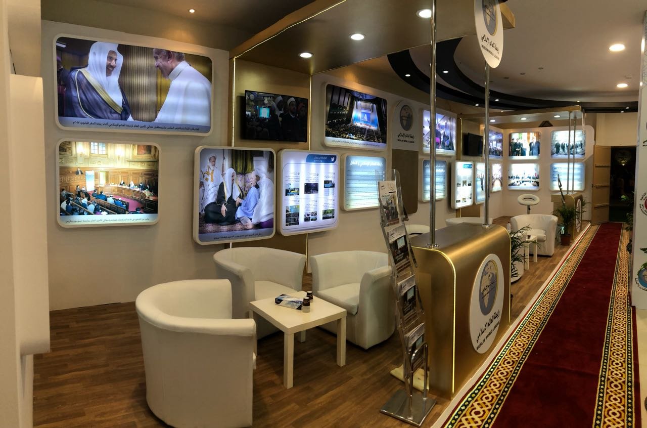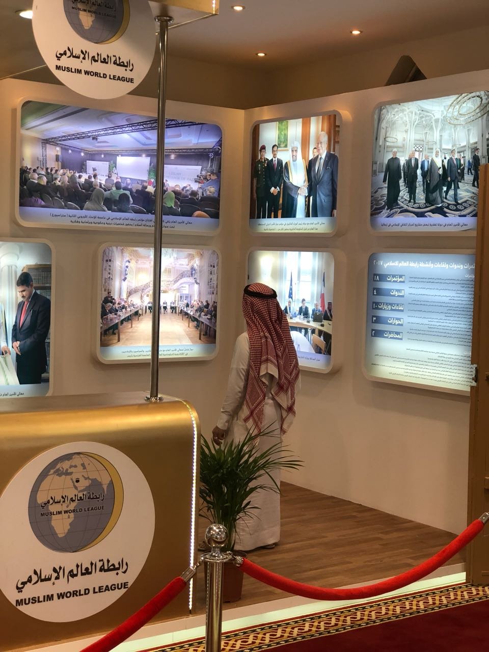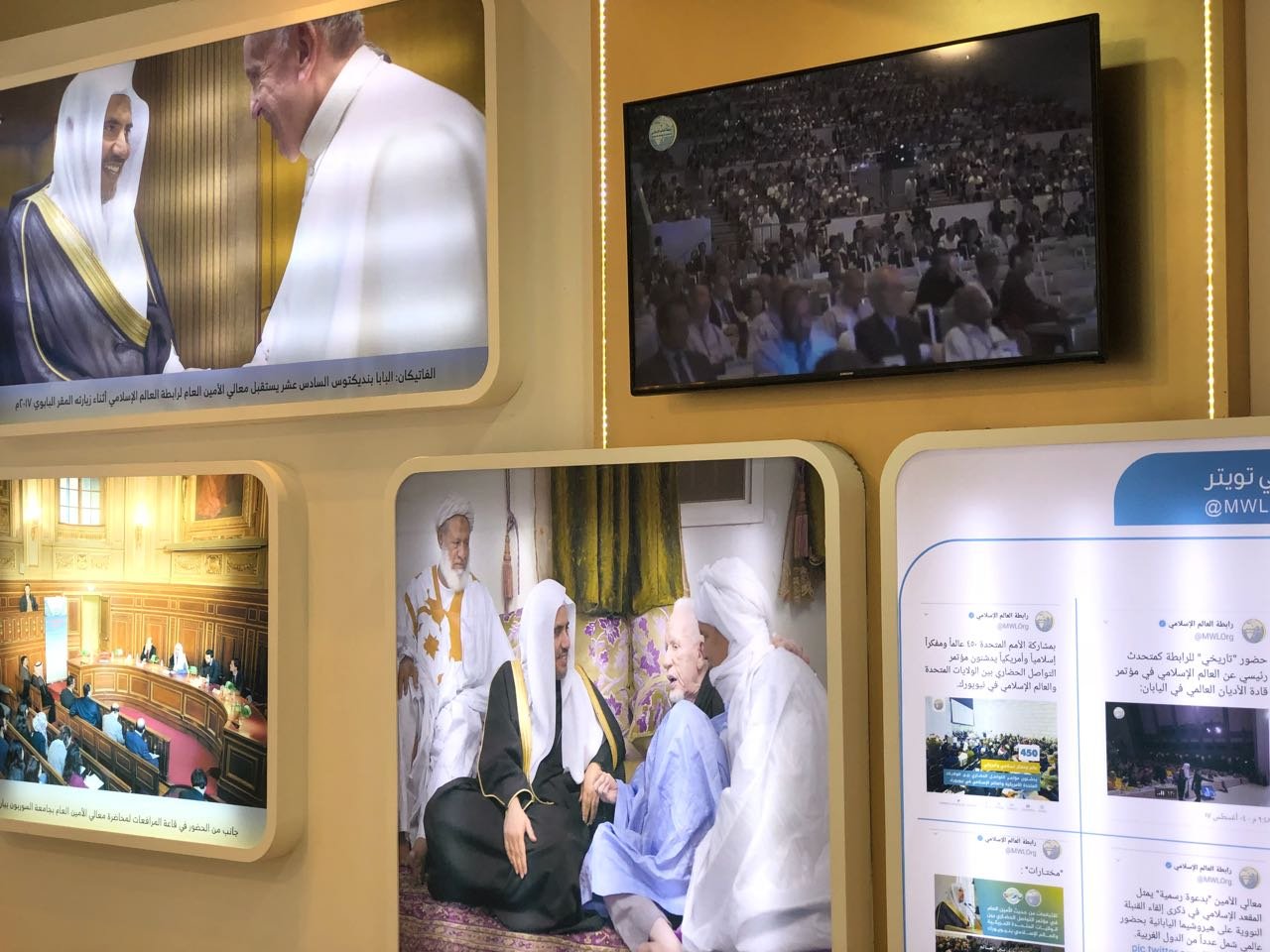 واستوقف الزوار جناح الصور التي تظهر المؤتمرات العالمية التي رعتها وشاركت بها الرابطة في مختلف دول العالم كمؤتمر رابطة العالم الإسلامي في عاصمة الاتحاد الأوربي الثانية " ستراسبورغ " والذي كان بعنوان " الاسلام ورسالة السلام " ، كذلك حضور الرابطة التاريخي كمتحدث رئيسي عن العالم الإسلامي في مؤتمر قادة الأديان العالمي في اليابان ، كما لفتت صورة معالي الأمين العام لرابطة العالم الإسلامي مع بابا الفاتيكان نظر الزوار لما تظهر من معاني سامية للتعايش السلمي بين الأديان وهذا مايظهر جلياً في خطوات وسير الرابطة الحثيث حيث تترأس الرابطة برنامجاً عالمياً عن القيم المشتركة وستعقد أول ندوة له في الشهر الجاري سيحضرها أكثر من ألف مدعو من أتباع الديانات وسيكون للمشرع بعداً عالمياً يرسخ مفهوم العودة للقيم الأخلاقية المشتركة .